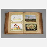 meist vor 1940, ca. 96 Glückwunschkarten, Kindermotive, in Album mit geprägtem Deckelmotiv um 1910, normale Altersspuren, Maße Album ca. 28 x 21 cm.