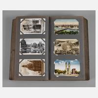 vor 1940, ca. 400 Stück, meist topographische Ansichtskarten, Frankreich, Rom, Deutschland, wenige farbig lithogr., im schönem Jugendstilalbum mit aufgelegter Deckelplakette, normale Altersspuren, Maße Album ca. 40 x 25 cm.