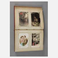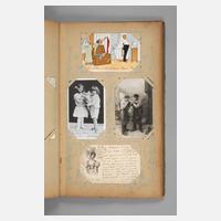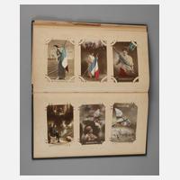 um 1914 bis um 1950, ca. 150 Postkarten, meist soldatische Kitschmotive, einige Serienkarten, in gut erhaltenem Album mit Deckelmotiv, normale Altersspuren, Maße Album ca. 40,5 x 23,5 cm.