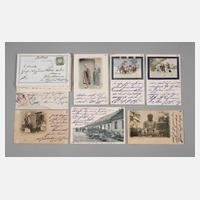 um 1910, 17 Postkarten mit Motiven aus dem deutschen Kolonialgebiet in China, sowie britische Postkarten aus Hongkong, sämtlich mit bayerischen Briefmarken, adressiert an die Gräfin zu Castell-Rüdenhausen, altersgemäß gute Erhaltung, leichte Sammelspuren.