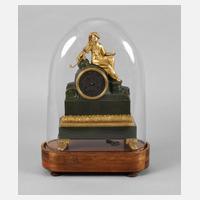 Frankreich, Anfang 19. Jh., Gehäuse aus Bronze und Messing feuervergoldet, partiell grün gefasst, bekrönt mit Pfeife rauchendem Türken, auf einem Fass sitzend, Pendulenwerk mit Halbstundenschlag auf Glocke, Pendel mit Fadenaufhängung, versilbertes Ziffernblatt, funktionstüchtig, mit Glassturz, dieser rückseitig mit langem Sprung, H gesamt 43 cm.