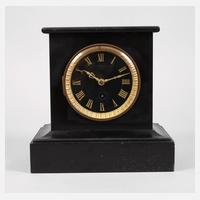 um 1880, aus schwarzem Onyx, auf Ziffernblatt und Werk gemarkt L. Döring Leipzig, aufgesetzte römische Zahlen aus vergoldetem Messing, funktionstüchtig, mit Schlüssel, H 22 cm.