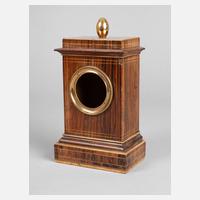 1. Hälfte 19. Jh., vermutlich als Taschenuhrenständer gedachtes Gehäuse mit klappbarem Deckel, Furnier in indischem Palisander mit Fadeneinlage, Deckelknauf ergänzt, eine kleine Furnierfehlstelle oben rechts, H 18 cm, D (innen) 45 mm.