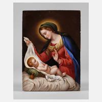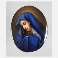 1. Hälfte 20. Jh., unsigniert, Prägemarke, ovale flache Bildplatte mit feiner Aufglasurbemalung Madonna nach Carlo Dolci, ungerahmt, H 8,5 x B 7 cm.