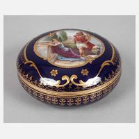 um 1900, blaue Stempelmarke Bernhard Bloch Eichwald, kobaltblauer Fond, farbig und Gold bedruckt, Deckel mit mythologischer Szene, normale Altersspuren, D 10,5 cm.