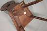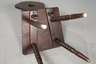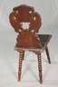Eiche massiv, dunkelbraun gebeizt, um 1900, floral geschnitzte Lehne, trapezförmige Sitzfläche, Trocknungsrisse, rest.bed., H 95 cm, SH 48 cm und H 100 cm, SH 50 cm.