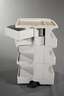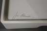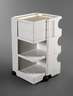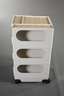 am Boden signiert, Hersteller Bieffe Plast Padova Italia, weißer Kunststoff, Einlegeböden später mit Holzfolie beklebt, Maße 74x41x43 cm.