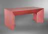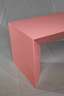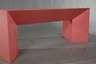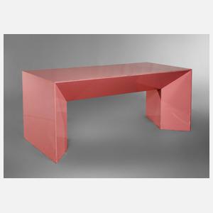aus der Prisma-Serie für Rosenthal 1981, einteiliger Korpus aus gekantetem Stahlblech, dieser pinkfarben lackiert, prismenförmige Beine und Platte, Originallack mit normalen Alters- und Gebrauchsspuren, Maße 76 x 180 x 80 cm.