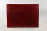 wohl Mitte 20. Jh., ungemarkt, schwarz lackiertes Holzgestell, mit leicht ausgesellten sich nach unten verbreiternden Beinen, die Platte mit feiner Lackmalerei in Bordeaux und Schwarz, guter Zustand, geringe Gebauchsspuren, Maße 32x119x90 cm.