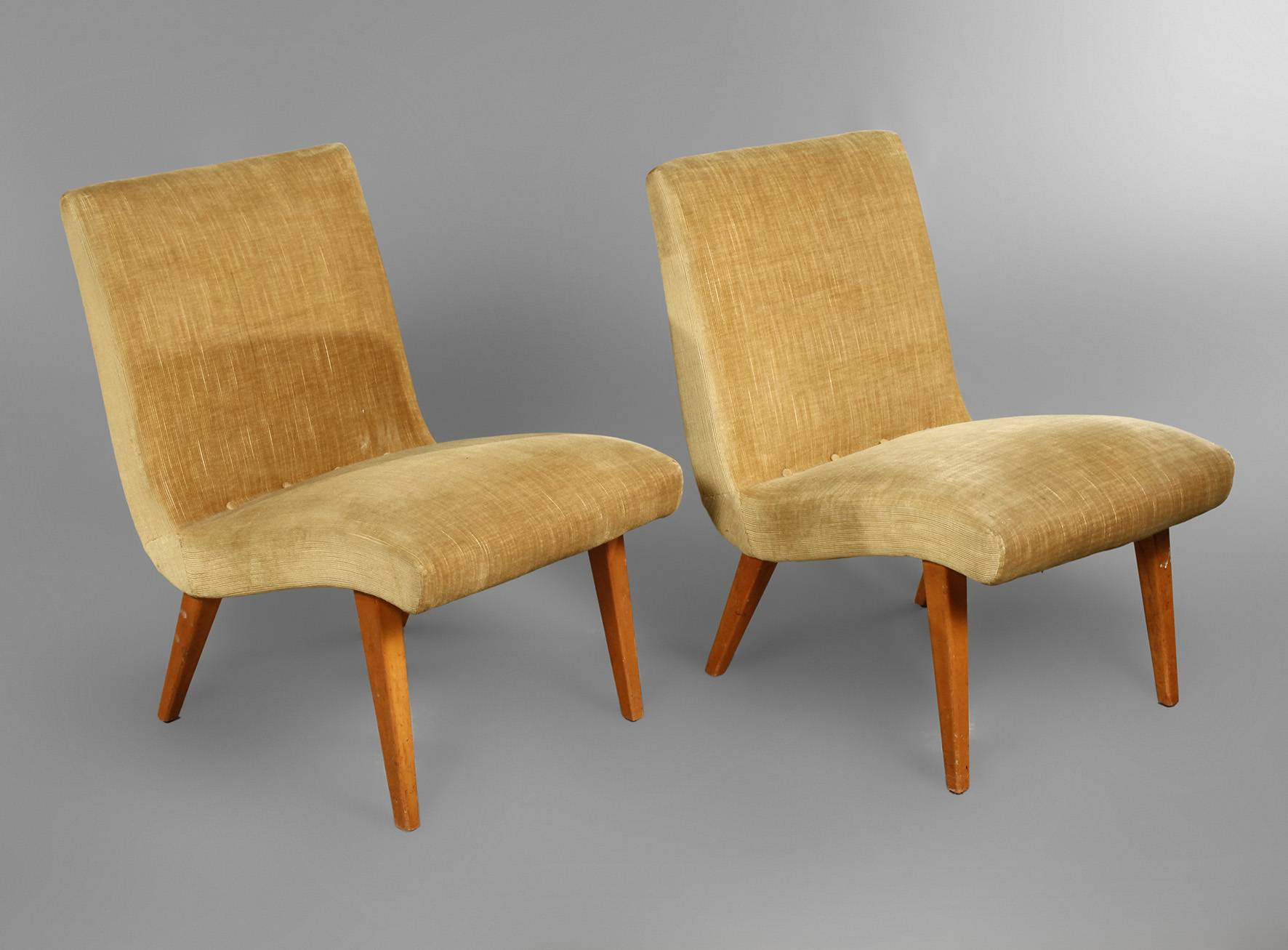 Entwurf Jens Risom, Hersteller: Knoll, ca. 1949, Gestell aus Buche massiv, originaler senffarbener Korbbezug, guter Originalzustand, Maße 77 x 51 x 70 cm.