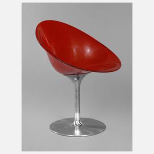 für Kartell, Modell Eros, 1990er Jahre, Sitzschale aus rotem Polycarbonat, drehbar gelagert auf Aluminium-Rundfuß, geringe Gebrauchsspuren, H 80 cm, SH 47 cm.