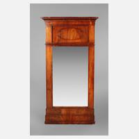 Weimar um 1810, Mahagoni auf Nadelholz furniert, originales Spiegelglas, darüber bogenförmige ebonisierte Reserve mit vergoldeter Amphore, die Lysenen verziert mit Puttenköpfen aus Bronze, diese später goldbronziert, Furnierschäden, rest. bed., Maße 217x68x3 cm.