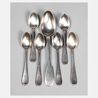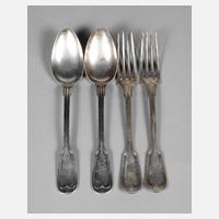 Ende 19. Jh., Silber gestempelt 800 M, Rückseite mit graviertem Besitzermonogramm M.L. mit Grafenkrone, zwei Löffel und zwei Gabeln, stärkere Gebrauchs- und Altersspuren, G ca. 278,4 g.