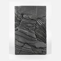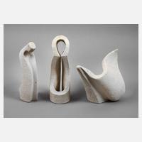um 1960, unsigniert, unglasierter cremefarbener Scherben mit strukturreicher Oberfläche, wohl religiöses Motiv, in schwungvoll fließender Formensprache, sehr gute Erhaltung, H max. ca. 25 cm, L max. ca. 26 cm.