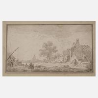 Darstellung des dörflichen Lebens mit mehreren Personen, unter locker bewölktem Himmel, Vernis mou mit schöner Grauabstufung auf schwachem Bütten und auf Bütten kaschiert, links unten in der Platte monogrammiert und datiert „WK. 1631“, sehr frühes Beispiel der um 1620 von Dietrich Meyer entwickelten Technik, bis an Darstellungslinie beschnitten, geringe Erhaltungsmängel, Darstellungsmaß ca. 15 x 26,4 cm.