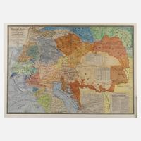 oben links ausführlich betitelt „Übersichts-Karte der fahrenden Posten in dem Oesterreichischen Kaiserstaate und in den sämtlichen Nebenländern von Franz Raffelsperger… Wien 1827“, Mitteleuropa umfassende Karte mit Einzeichnung der Postrouten der kaiserlich und königlichen Post von Österreich, in der Darstellung zwei Tabellen mit Posttarifen und im unterem Bereich Legende, kolorierter Stahlstich, geglättete Faltlinien, Mittelfalz hinterlegt, unter Passepartout und hinter Glas gerahmt, Passepartoutausschnitt ca. 50 x 70 cm. Künstlerinfo: auch Franz Raffelberger oder Ferenc Raffelperger: österr. Kartograph und Geograph (1793 Modern/Modra bis 1861 Wien), Sohn eines Gutsbesitzers, 1804–05 Besuch des Gymnasiums in Wien, 1820–49 Beamter im Postdienst und Beschäftigung mit der Modernisierung des Postwesens, erhielt 1839 ein Goldmedaille auf der Wiener Gewerbeausstellung für seine „General-Post- und Eisenbahnkarte des Kaiserthums Österreich“, 1843 Gründung der „K.k. außerordentlich ausschließlich privilegierte Kunstanstalt“ und Herausgeber der Zeitung der „Der Unpartheiische“, Quelle: Wurzbach, Wikipedia und Internet.
