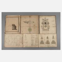 am 3.12.1740 brannte die evangelische Pfarrkirche St. Georgen im heute zu Halle/Saale gehörenden Ortsteil Glaucha durch ein vergessenes Kohlepfännchen bis auf die Grundmauern nieder und vernichtete den Wirkungsort bedeutender Theologen wie Thomas Münzer und August Hermann Francke (Gründer der Franckeschen Stiftungen), wie die vorliegenden Entwurfs- und Bauausführungszeichnungen erkennen lassen, wurde offenbar bereits im Brandjahr der Entschluss zum Neubau der Kirche gefasst und schon 1740 wurden erste Entwürfe vorgelegt, die 1740–1755 datierten Zeichnungen zeigen Grundrisse, Fassadenaufrisse, Ansicht des Kanzelaltars, Gestaltungsdetails der Emporen, eine Zeichnung der Wetterfahne, Gestaltungszeichnungen des Turms und der Laterne, konstruktive Detailzeichnungen z.B. des Glockenstuhls und von Simsgestaltungen sowie Material- und Proportionsberechnungen, Mischtechniken (meist Tuschezeichnungen, partiell aquarelliert) auf Büttenpapier, um die 30 Blatt, meist St. Georgen betreffend, unterschiedliche Formate und Erhaltungszustände, ungerahmt, Blattmaße maximal 40 x 58 cm.