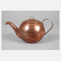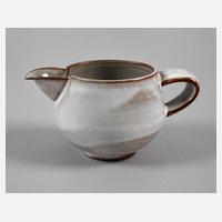 Entwurf um 1926, monogrammiert OL mit Unterstrich, rotbrauner Scherben mit weißlicher transparenter Glasur, kugelige Form mit breitem Ausguß und breitem Bandhenkel, innen minimal nicht durchgehend gasurrissig, L 16 cm. Quelle: MoMA Museum of modern Art im Internet.