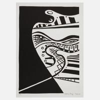 schwungvolle Komposition mit kräftigen schwarz/weiß Kontrasten, Linolschnitt auf Karton, unter der Darstellung in Blei bezeichnet „e.a.“ signiert „Herbert von Arend“ sowie datiert „1959/82“, rückseitig Stempel „nachlass hans kessler“, ungerahmt, Darstellungsmaß ca. 28,5 x 20 cm, Blattmaß ca. 31,7 x 25 cm. Künstlerinfo: dt. Künstler und Kunstgewerbler (1910 Tsingtao/China bis 2001 Schleiden/Eifel), nach dem ersten Weltkrieg Ausweisung der Familie aus China, 1921-28 Besuch der Oberrealschule in Münster, ab 1928 Schüler am Bauhaus hier Vorkurs bei Josef Albers, Lehre in der Webereiwerkstatt am Bauhaus, 1930-31 auch in der freien Malklasse bei Wassily Kandinsky und Paul Klee, 1931 zusammen mit weiteren Schülern Auseinandersetzung mit der Werkstattleiterin Gunta Stölzl wegen ihres Führungsstils, 1932 Weber-Gesellenprüfung in Glauchau – aufgrund der Auseinandersetzungen am Bauhaus verzichtete er auf sein Diplom, ab 1933 mechanischer Weber, anschließend Wehrmachtsbeamter, Kriegsdienst und russische Gefangenschaft bis 1949, ab 1952 Finanzbeamter in Schleiden-Gemünd/Eifel und parallel künstlerische Tätigkeit, nach der Pensionierung 1972 ausschließlich künstlerisch tätig, Quelle: Zeitschrift Symbol Heft 36, bauhaus100de und Internet.