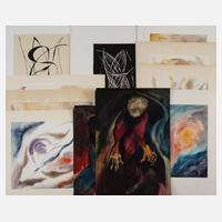 Teilnachlass des 2000 in Krefeld verstorbenen Künstlers, bestehend aus einer gerahmten farbigen Batikarbeit von 1980, Passepartoutausschnitt 55 x 76 cm, 15 Aquarellen, einer Tuschezeichnung und einem Linolschnitt, alle Arbeiten signiert und datiert, umfasst einen Zeitraum von 1926-1990, meist unter Passepartout montiert und mit Nachlassstempel versehen, teils leichte Lagerspuren, Blattmaß max. 40 x 30 cm, beigegeben, Kopie des Bauhausausweises, vier Fotografien von Batikarbeiten, handschriftliche Beschreibung zur Batiktechnik sowie handschriftliche Gedanken zum eigenen malen aus dem Jahre 1975. Künstlerinfo: dt. Maler, Graphiker und Architekt (1906 Essen bis 2000 Krefeld), 1929-31 Studium der Architektur an der Technischen Hochschule in Stuttgart, ab 1931 Studium am Bauhaus in Dessau und hier Schüler bei Wassily Kandinsky, Josef Albers, Lilly Reich, Ludwig Mies van der Rohe und Ludwig Hilberseimer, kurzzeitig in einem Architekturbüro tätig, ab 1934 in verschiedenen Positionen bei der Friedrich-Alfred-Hütte in Rheinhausen tätig und parallel künstlerisch Beschäftigung, nach seiner Pensionierung 1971 bis ins hohen Alter künstlerisch tätig, Quelle: pluspedia.