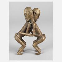 wohl Nigeria, 20. Jh., den Yoruba zugeordnet, Darstellung zweier umschlungener Ringkämpfer, bekleidet mit Lendenschürzen, ohne Plinthe, auf den Füßen stehend, H 14 cm.