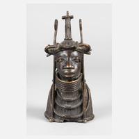 Benin, 20. Jh., Bronze in der verlorenen Form gegossen, dunkel patiniert, Darstellung eines Benin-Königs, sehr gute Gestaltung und Qualität, H 18 cm.
