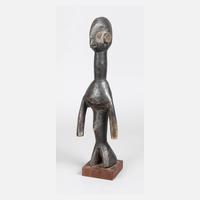 Burkina Faso, der Volksgruppe der Mosi zugeschrieben, helles, schwarz gefärbtes Tropenholz, stilisierte, geschlechtslose Plastik, Plinthe später hinzugefügt, H 42 cm.