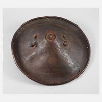 wohl Sudan, 2. Hälfte 19. Jh., stark gewölbtes Schild aus Hartleder, verziert mit geprägtem Muster, Rand verstärkt, lederummantelter, kräftiger Griff, sehr gute Erhaltung, D 52 cm.