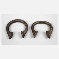 wohl Kongo, 20. Jh., der Volksgruppe der Woyo zugeordnet, schwarzbraune Oberfläche, minimale Chips, H ca. 7 und 8,5 cm.