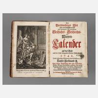auf das Jahr [...] 1742, nebst historischer Erklärung eines Medaillons vom Kayser Ferdinand II., auch kurtzer Vorstellung aller jetzt-regierender Kayser, Könige, Churfürsten, geistlicher und weltlicher Fürsten, und Grafen des H. R. Reichs, nach ihren Lebens- und Regierungs-Jahren, wie auch einiger auswärtiger Fürsten, des Papstes und der Cardinäle, Nürnberg bei Weigel, Format 8°, Titelkupfer, 11 Blatt, 116 Doppel-S. und ca. 97 Wappen-Kupfer, alt restaurierter Pappeinband, dieser mit sichtbaren Altersspuren, Buchblock in altersgemäß gutem Zustand.