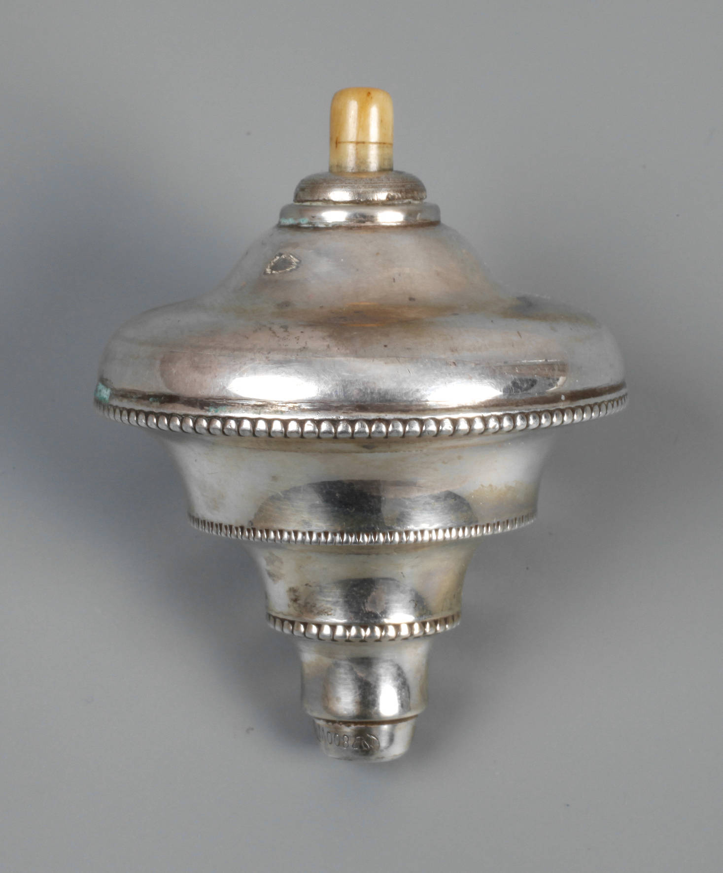 um 1920, gestempelt Halbmond, Krone, 800, Herstellermarke Wilhelm Binder Schwäbisch Gmünd, verziert mit umlaufenden Perlbändern, Kunststoffdrücker, ohne Kabel, L 5 cm, G ca. 50 g.