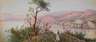 Blick von einer Anhöhe bei Sorrento, über den Golf von Neapel, mit dem rauchendem Vesuv im Hintergrund, getaucht ist die Szenerie in das rotglühende Licht der untergehenden Sonne, Gouache auf leichtem Karton, um 1870, rechts unten signiert „G. Gianni“, rückseitig betitelt „Sorrento da Capodimonte“, geringe Erhaltungsmängel, ungerahmt, Blattmaß ca. 10 x 22,5 cm. Künstlerinfo: auch Giancinto Gianni, ital. Landschaftsmaler (1837 bis 1895), Quelle: artprice und Internet.