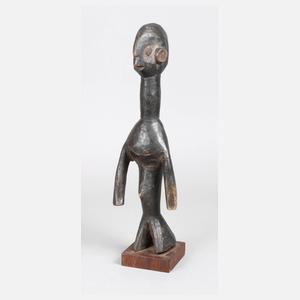 Burkina Faso, der Volksgruppe der Mosi zugeschrieben, helles, schwarz gefärbtes Tropenholz, stilisierte, geschlechtslose Plastik, Plinthe später hinzugefügt, H 42 cm.