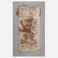um 1750, Leinen, einseitig rot bedruckt mit Wappenlöwe unter den Initialen des Landgrafen, Alters- und Gebrauchsspuren, Maße ca. 58 x 39 cm.