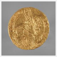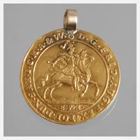 1702, Münzmeister Ernst Peter Hecht Mzst. Leipzig, Kurfürst zu Pferde nach rechts/sächsisch-polnisches Wappen, Gold, ss+, gewellt, gehenkelt (wohl weich gelötet), attraktives Stück, G ges. ca. 3,68 g.