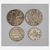 1: 1/6 Taler auf den Tod Friedrich August I. 1827, ss+. – 2: 1/12 Taler 1819, ss. – 3: 1/3 Taler 1812, s. – 4: 1/3 Taler Friedrich August III. 1787, ss, schöne Patina.