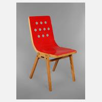 Emil & Alfred Pollak, Wien, 1952, für die Wiener Stadthalle, Buche und Schichtholz, original rot lackiert, stapelbar, Alters- und Gebrauchsspuren, H 84, Sitzhöhe 46 cm. Lit. vgl.: Eva B. Ottillinger, Möbeldesign der 50er Jahre, Wien 2005, S. 64, 133; Bundeskanzleramt MA7 (Hg.), Roland Rainer. Das Werk des Architekten 1927–2003, Wien 2003, S. 17.
