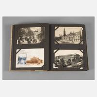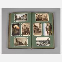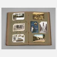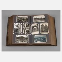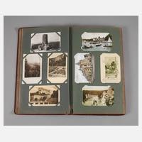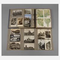 ca. 250 Postkarten, meist um 1935, viele topographische Postkarten aus Franken, Mitteldeutschland, viel Thüringen, wenige Wien, Rhein, einige militärische, ”Unser Reichsheer”, eine U-Boot-Karte, in angestaubtem Album um 1914 mit Wilhelm I. als Deckelmotiv, Maße Album ca. 41 x 25 cm.