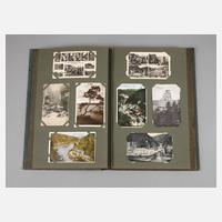 Deutschland um 1910 bis vor 1945, ca. 300, vorwiegend topographische Postkarten, einige farbig lithographierte wie Bad Harzburg, Blick vom Drachenfels, Ostseebad Brunshaupten Steilküste, Burg-Gasthaus Friedensburg bei Dresden, Baden-Baden Altes Schloss, Schloss Linderhof, einige Karten Potsdam, in Jugendstilalbum mit Altersspuren, Maße ca. 41,5 x 26 cm.
