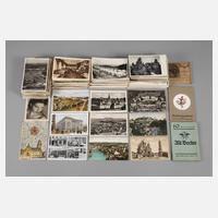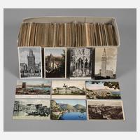 um 1910 bis um 1940, ca. 500, vorwiegend topographische Postkarten Deutschland, Italien, Europa, dabei frisches Heft 10 Ansichtskarten ”Alt Berlin”, sechs frische Karten ”Aus Deutschlands großer Zeit” in originaler Serienhülle, zwei frische Ansichtskarten von Franzensbad (farbig lithographiert), wenige Kitschkarten, normale Alters- und Gebrauchsspuren.