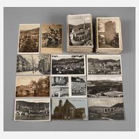 um 1900 bis um 1930, über 100 Stück, u.a. Rothenburg ob der Tauber, Berchtesgaden, Nürnberg, Eisenach Geburtshaus Bach (farbig lithogr.), Lutherhaus, beschädigte Leporellokarte Wartburg, Rhein, Würzburg, Schloss Herrenchiemsee, dabei Propaganda-Postkarten 3. Reich, auch Berghof, in Album Mitte 20. Jh., unvollständig besammelt, gute Erhaltung, Maße Album ca. 25 x 22,5 cm.