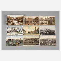 um 1910, ca. 42 topographische Postkarten, u. a. Jena, Ilmenau, Werdau, Chemnitz, Delitzsch, Döbeln, Plauen'scher Grund bei Dresden, teilweise farbig lithographiert, die meisten postalisch gelaufen, normale Altersspuren.
