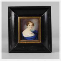 19. Jh., ungemarkt, unsigniert, feine polychrome Aufglasurbemalung, partiell weiß gehöht, Darstellung einer feinen Dame im hochgeschlossenen Gewand, sehr guter Zustand, D 10,5 cm.