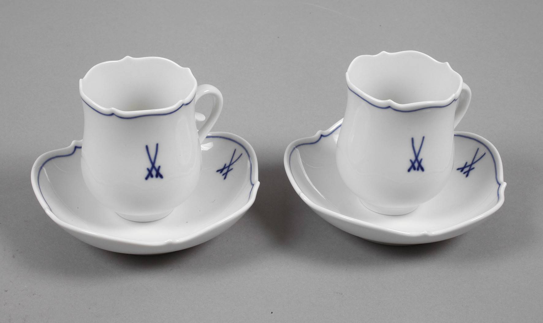 blaue Schwertermarken nach 1934 und verschiedene Prägemarken, Art déco-Form, mit mit kobaltblauer Unterglasurbemalung, guter Zustand, H zusammen ca. 8 cm.