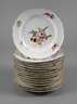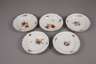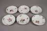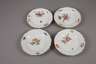 2. Hälfte 18. Jh., blaue Schwertermarke mit Punkt bzw. Marcolinistern, polychrom bemalt mit Blütenbuketts und Streublümchen, vergoldete geschweifte Ränder, alle berieben und bestoßen, einer geklebt, D 23 cm.