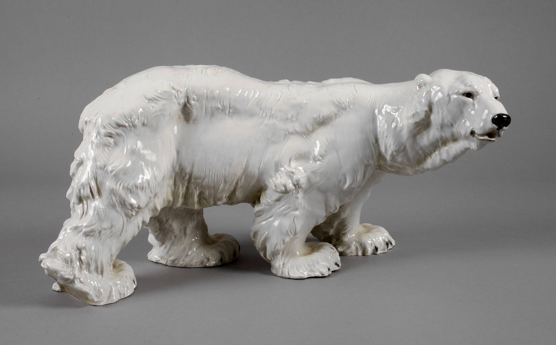 Entwurf 1903, Ausformung Pfeifferzeit (1924–1934), blaue Schwertermarke, 1. Wahl, geritzte Modellnummer T181, Malermonogramm ”Z.”, pastelltonige Unterglasurbemalung, naturalistische Ausformung, guter Zustand, L 55 cm.