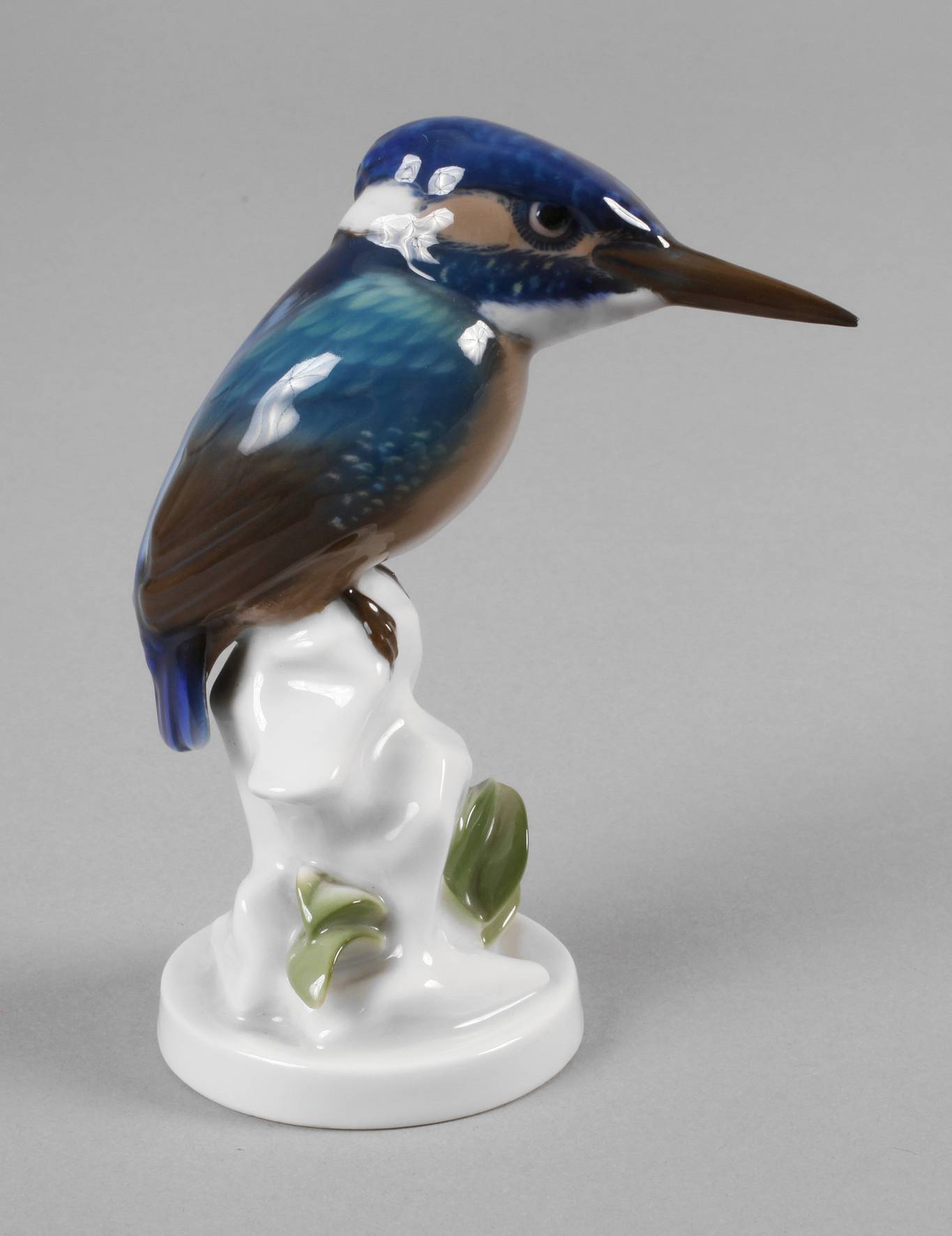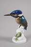 Entwurf Elsa Fischer-Treyden 1926, grüne Stempelmarke Selb-Bavaria, Modellnummer 867, Unterglasurbemalung, in naturalistischer Ausformung auf einem blattverzierten Ast sitzend, Schnabelspitze mit winzigster Fehlstelle, sonst guter Zustand, H 12 cm.