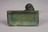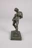 Ende 19. Jh., unsigniert, Bronze dunkelgrün patiniert, Darstellung eines Bacchanten, mit einem Weinschlauch unter dem Arm, Altersspuren, sonst gut erhalten, H ca. 12,5 cm.