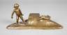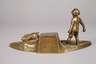 Anfang 20. Jh., signiert, Gießerstempel Artur Rubinstein Wien, an der Unterseite geprägte Nummer 1338?, Bronze hell patiniert, kleiner Junge bei der Hasenjagd, mit zwei flüchtenden Hasen, auf naturalistisch gestalteter Stiftablage mit rückseitig scharniertem Klappdeckel, Glaseinsatz fehlt, minimale Altersspuren, L ca. 23 cm, H ca. 10,5 cm. Künstlerinfo : österreichischer Bildhauer (1875 Wybubow/Ukraine bis 1963 Wien), Höhepunkt des Schaffens lag in den Jahren zwischen 1895 und 1925 in Wien, neben seinen skulpturalen Werken fertigte er zahlreiche figürlich überformte Gebrauchsgegenstände. Quelle: Internet.
