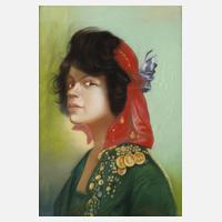 junge Frau mit schwarzem Haar und den Betrachter fokussierendem Blick, Pastell, rechts unten signiert und datiert "Rud. Kramer 1900", hinter Glas gerahmt, Falzmaß ca. 61 x 44 cm.
